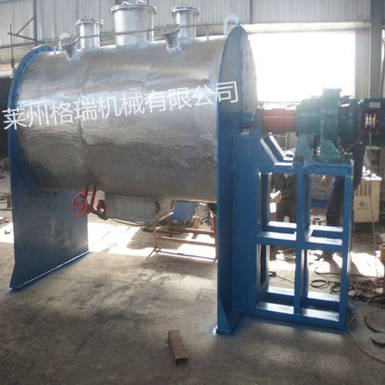 犁刀混合機主要由傳動部分,臥式筒體、犁刀組軸、飛刀組、出料閥、噴液裝置等組成。 混合機傳動部分由電機、擺線針輪減速機、聯軸器、犁刀軸等部件組成。臥式圓筒體作盛物料用,筒體上開有若干孔,供進出料、觀察用。犁刀軸支承座固定在筒體二端的蓋板上。犁刀組由犁刀、犁刀臂和主軸組成,犁刀由犁刀臂安裝在主軸上,并作成哈夫結構,便于拆裝。飛刀組由多把飛刀組成,通過付電機直接驅動,安裝在筒體側面。出料閥裝在筒體的底部(連續出料除外),用于關閉和放出物料?;旌蠙C噴液裝置固定在筒體上方,噴嘴采用農用噴頭,噴散效果好。