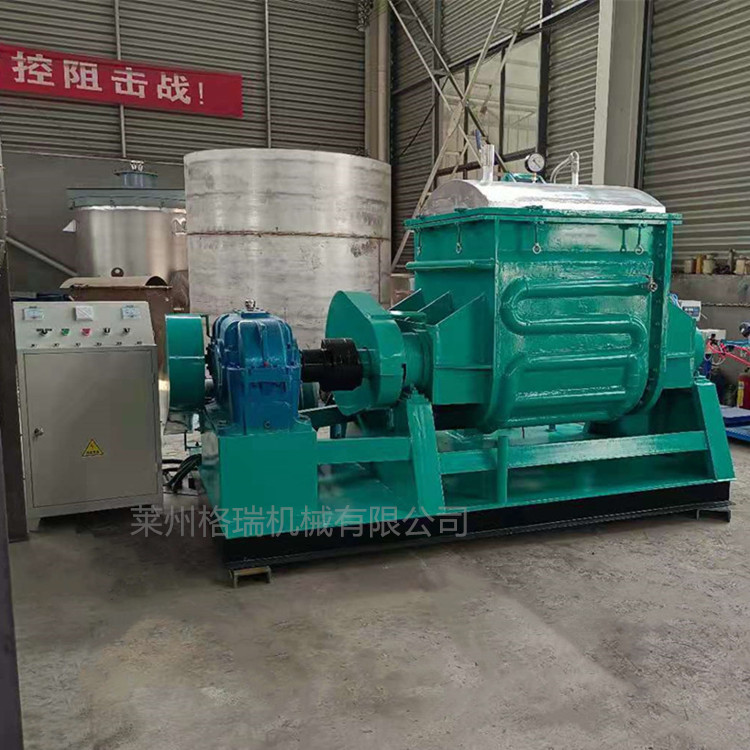 電加熱捏合機(jī)分普通型、壓力型、真空型三大類,加熱方式為電加熱,出料方式有液壓翻缸傾倒式、手動(dòng)傾倒式、球閥出料式及螺桿擠出式等,與物料接觸部件均采用不銹鋼或碳鋼制成,能確保制品的純度和質(zhì)量。該機(jī)采用“Z”型雙槳攪拌,能使物料迅速反應(yīng),均勻混合。