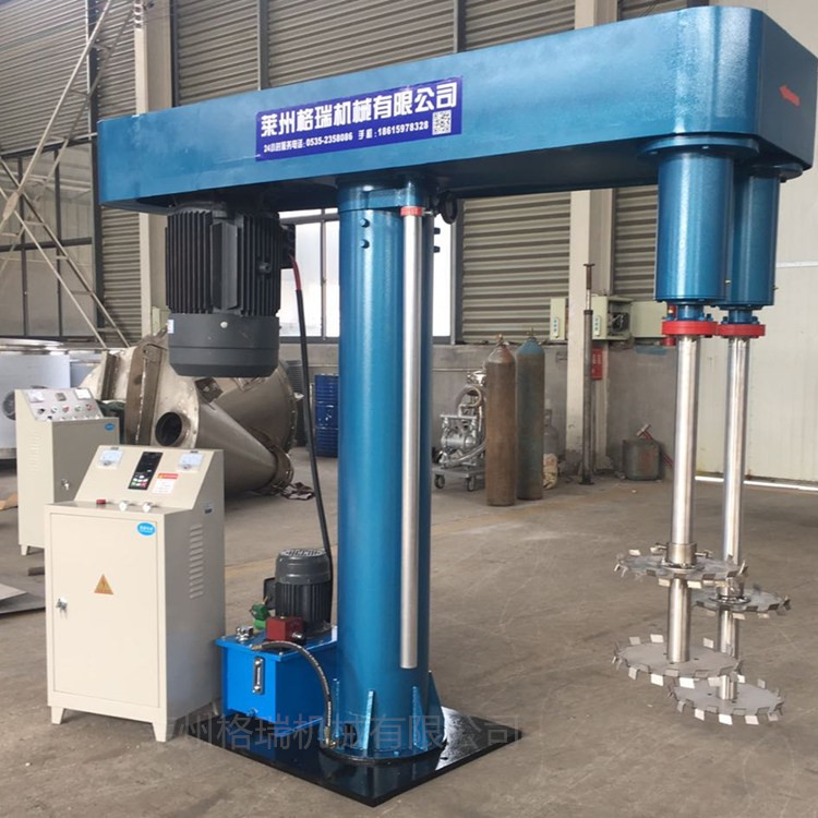 分散機設備采用***材料生產,確保產品質量,由升降系統、主傳動、攪拌系統、導向機構、電控箱五部分組成,各部分結構緊湊、合理,是種適合對多種混合液體、固體、進行攪拌溶解、分散、均質設備,主電機為調速電機,調速范圍在80-1450r/min,升降形式液壓升降,中速作攪拌溶解用,高速作分散均質用。物料在葉片的高速轉動作用下,在容器內上下劇烈翻動,與葉片產生碰擊和剪切,使聚集體破壞達到迅速分散、均質混合、加速溶解,適用各種粘度物料。廣泛用于涂料.顏料.油墨.粘膠劑等有關化工產品的制作。