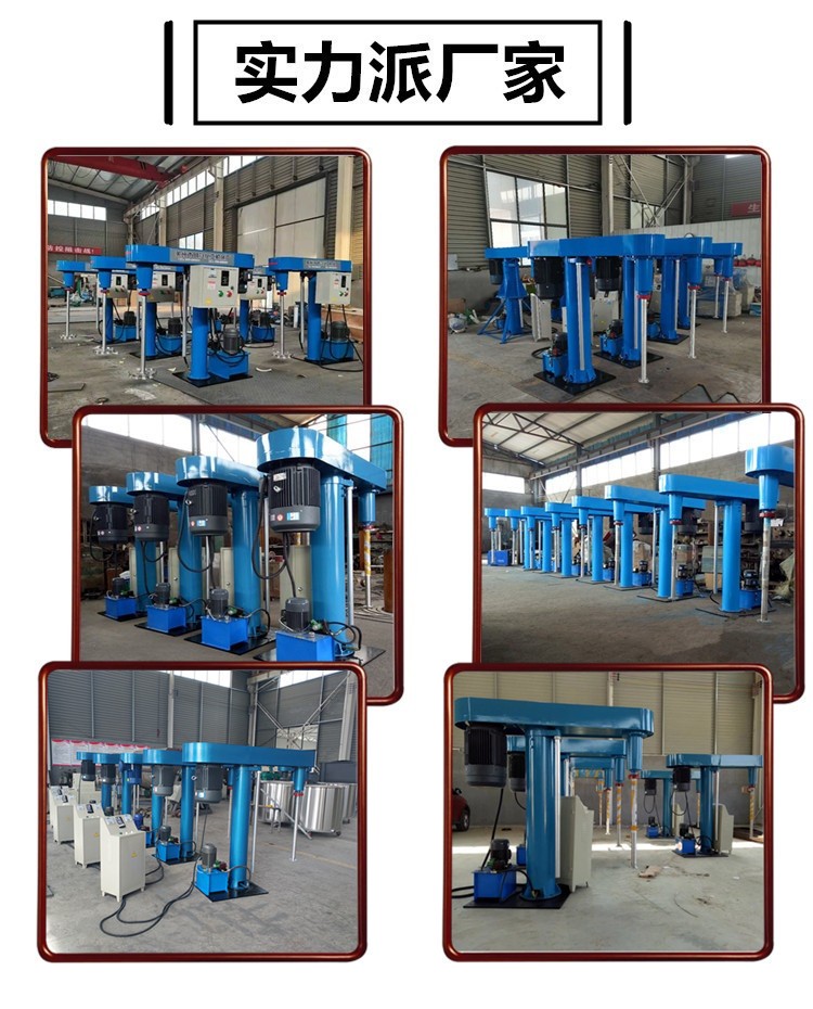 分散機(jī)廣泛應(yīng)用于涂料、液體進(jìn)行攪拌分散、溶解的設(shè)備,應(yīng)用涂料、油墨、顏料、膠粘劑等化工產(chǎn)品,該機(jī)由液壓系統(tǒng)、主傳動、攪拌系統(tǒng)、導(dǎo)向機(jī)構(gòu)、電控箱五部分組成,各部分結(jié)構(gòu)緊湊、合理。