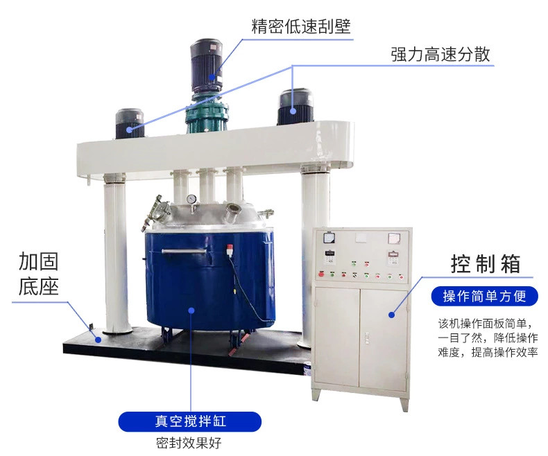 強(qiáng)力分散機(jī)是一種多功能分散攪拌混合機(jī),有真空狀態(tài)下、高速分散細(xì)化、刮壁翻滾搓合的攪拌設(shè)備,是一種無死點(diǎn)高低速結(jié)合、強(qiáng)力分散混合攪拌設(shè)備,可廣泛應(yīng)用于粘合劑、化妝品、化工產(chǎn)品、電池、食品、藥品、建材等行業(yè)的固-液、液-液相物料的混合、反應(yīng)、溶解、分散等工藝。