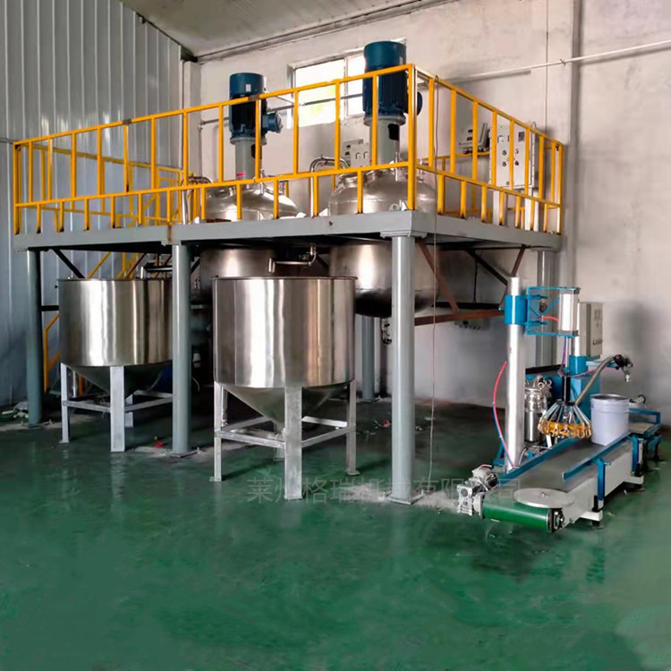 水性漆成套設(shè)備在涂料生產(chǎn)工藝上,采用液體計(jì)量器計(jì)量,高剪切乳化分散,真空吸料,真空消泡,半自動(dòng)灌裝工藝流程,從投料到出成品一道工序。